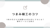 つまみ細工で作った髪飾りやアクセサリーは、どれも可愛くて華やかですよね。つまみ細工をきれいに仕上げるためには、まず下準備がとても大切。今回は、つまみ細工に欠かせない道具たちをご紹介します。