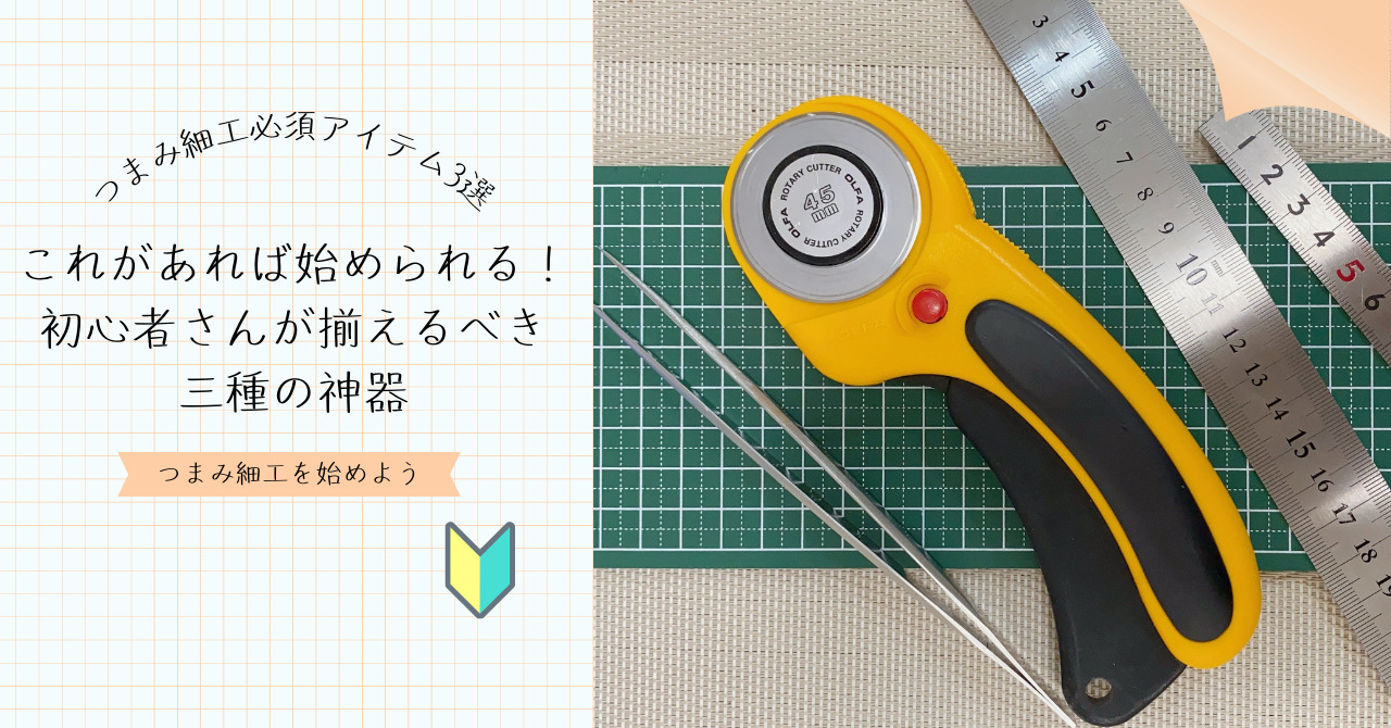 つまみ細工をきれいに仕上げるにはいろいろな便利グッズやコツがありますが、今回はつまみ細工を始めるための必須アイテムをご紹介しました。この3つ(4つ?)があればすぐにつまみ細工を始めることができますよ。これがらつまみ細工を始めたい方は、ぜひ参考にしてください!