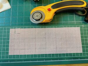 私の場合、生地を小さくカットする場合は5㎜の目盛りのあるカッターマットを使用しています。