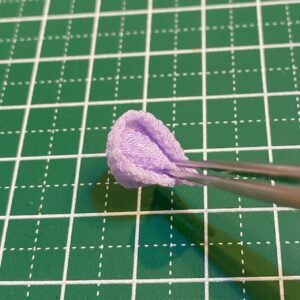 上から見て均等に葺けていたら、横からも見て、花びらの高さが均一になっているか確認してください。土台から花びらの足が浮いていないかも確認してください。修正したい場合は、ピンセットで花びらの足の部分を持って少しずつ調整しましょう。