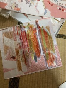やっぱり、裏がすごい…高級帯の模様は刺繍ではなく織りなので、糸の渡り方が半端ないです。