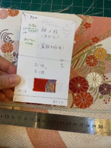 使うのはほんの一部です。どこを切り出すか決めます。豪華な模様の部分を使いたいけど、糸が渡ってそうだしな~