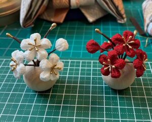お道具も作ります。何となくのイメージで、今回は紅白梅にします。